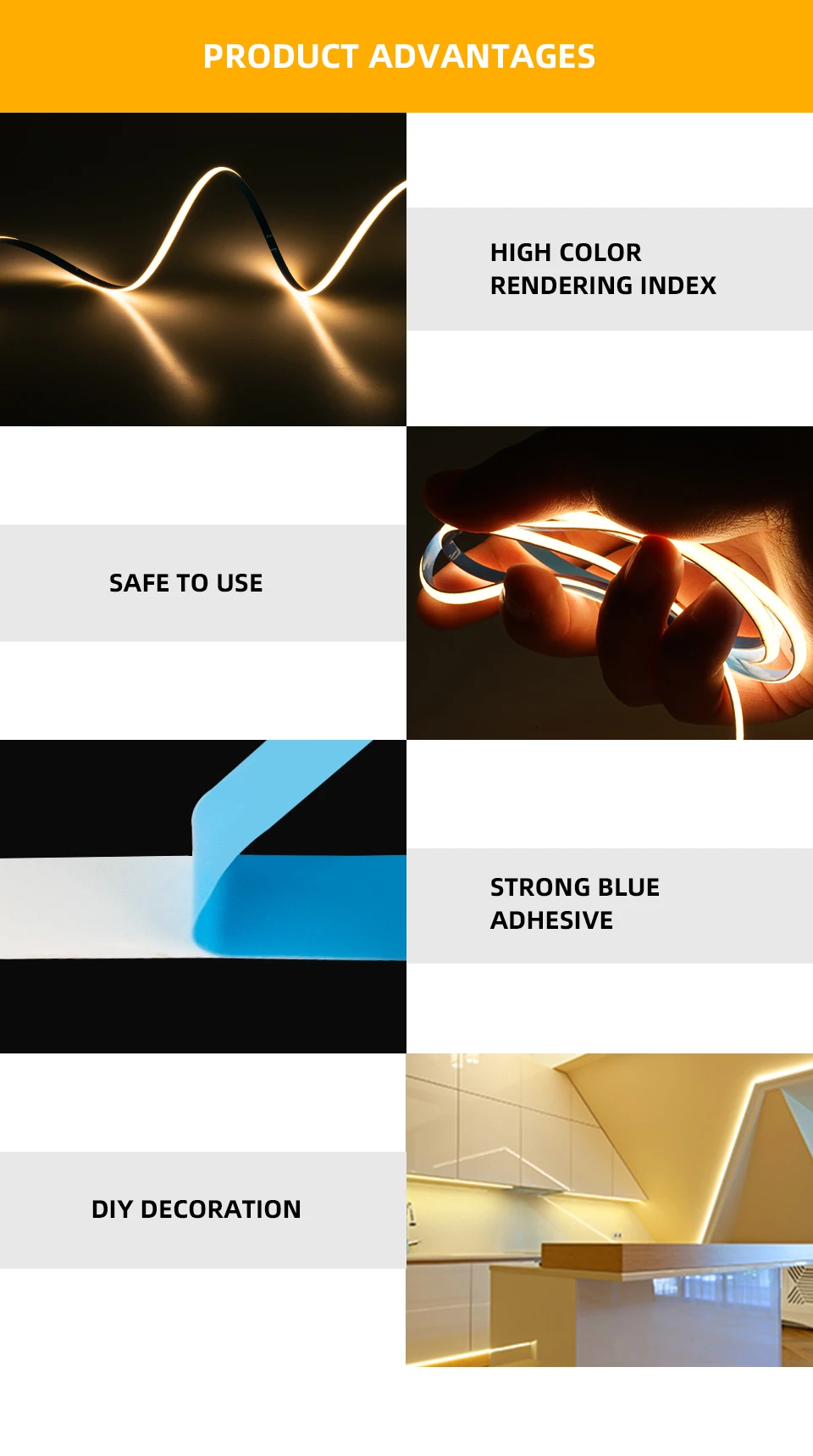 FCOB LED Strip 480 LEDs 4mm Super Thin COB FOB Linear Ribbon 3000K 4000K 6000K RA90 Dimmable 12V 24V
